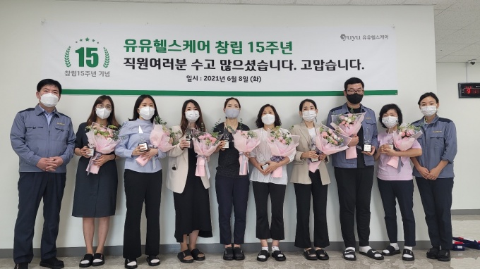 [µ¥Àϸ®¸Þµð ¾çº¸Çý ±âÀÚ] À¯À¯ÇコÄɾ 6¿ù 8ÀÏ Ã¢¸³ 15ÁÖ³âÀ» ¸Â¾Æ ¹Ì·¡ ºñÀü¿¡ ´ëÇØ Àü ÀÓÁ÷¿øÀÌ °øÀ¯Çϰí Àå±â±Ù¼Ó Á÷¿øÀ» ǥâÇÏ´Â ±â³ä½ÄÀ» ÁøÇàÇß´Ù.