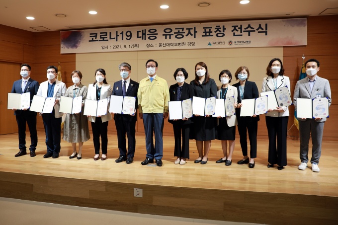 [µ¥Àϸ®¸Þµð ¹ÚÁ¤¿¬ ±âÀÚ] ½ÅÁ¾ °¨¿°º´ »çÅ ´ëÀÀ¿¡ Çå½ÅÇÑ °ü·ÃºÐ¾ß Á¾»çÀڵ鿡°Ô Àü¼öµÇ´Â ‘Äڷγª19 ´ëÀÀ À¯°ø Á¤ºÎÆ÷»ó’¿¡¼ ¿ï»ê´ëÇб³º´¿ø ÀÓÁ÷¿øÀÌ ´ë°Å ¼ö»ó¸í´Ü¿¡ À̸§À» ¿Ã·È´Ù.
