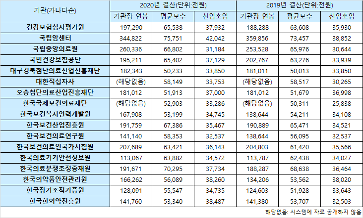 2019³âÀÇ °æ¿ì ±¹¸³¾Ï¼¾ÅÍ ½ÅÀÔ»ç¿ø ÃʺÀÀÌ 3885¸¸¿øÀ¸·Î Á¦ÀÏ ¸¹¾ÒÀ¸¸ç Çѱ¹ÀǾàǰ¾ÈÀü°ü¸®¿øÀÌ 3802¸¸¿øÀ¸·Î ±× ´ÙÀ½À¸·Î ¸¹´Ù. ¿À¼Û÷´ÜÀÇ·á»ê¾÷ÁøÈïÀç´ÜÀÌ 3699¸¸¿ø, Çѱ¹ÀÇ·áºÐÀïÁ¶Á¤ÁßÀç¿øÀº 3646¸¸¿øÀ» ±â·ÏÇß´Ù.