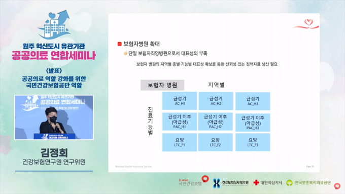 Áö³ 21ÀÏ ¿øÁÖ ÀÎÅͺҰíÈ£ÅÚ¿¡¼ °³ÃÖµÈ ¿øÁÖ Çõ½Åµµ½Ã À¯°ü±â°ü °ø°øÀÇ·á ¿¬ÇÕ¼¼¹Ì³ª¿¡¼ °Çº¸°ø´Ü ±èÁ¤È¸ ¿¬±¸À§¿øÀº "ÇöÀç º¸ÇèÀÚº´¿øÀº Àϻ꿡 ÀÖ´Â ´ÜÀÏ º¸ÇèÀÚÁ÷¿µº´¿øÀÌ´Ù º¸´Ï ´ëÇ¥¼ºÀÌ ºÎÁ·ÇÏ´Ù"°í ¹àÇû´Ù.