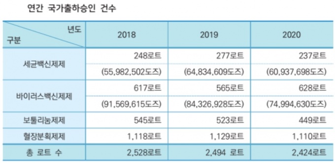 º¸°í¼¿¡ µû¸£¸é ¼¼±Õ¹é½ÅÁ¦Á¦´Â 237·ÎÆ®, ¹ÙÀÌ·¯½º¹é½Å 628·ÎÆ®, º¸Å縮´®Á¦Á¦ 449·ÎÆ®, Ç÷ÀåºÐȹÁ¦Á¦ 1100·ÎÆ®·Î, 2019³â Àüü ±¹°¡ÃâÇϽÂÀΰǼöº¸´Ù 70·ÎÆ® °¨¼ÒÇß´Ù.