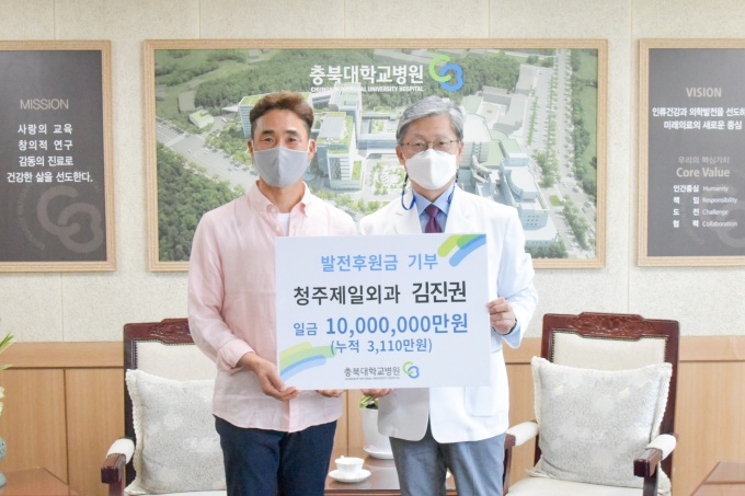 [µ¥Àϸ®¸Þµð ½ÅÁöÈ£ ±âÀÚ] ÃæºÏ´ëÇб³º´¿ø(º´¿øÀå ÃÖ¿µ¼®)Àº ûÁÖÁ¦ÀϿܰú ±èÁø±Ç ¿øÀåÀÌ ÃÖ±Ù º´¿ø¹ßÀüÈÄ¿ø±Ý 1000¸¸ ¿øÀ» ±âºÎÇß´Ù°í 24ÀÏ ¹àÇû´Ù.