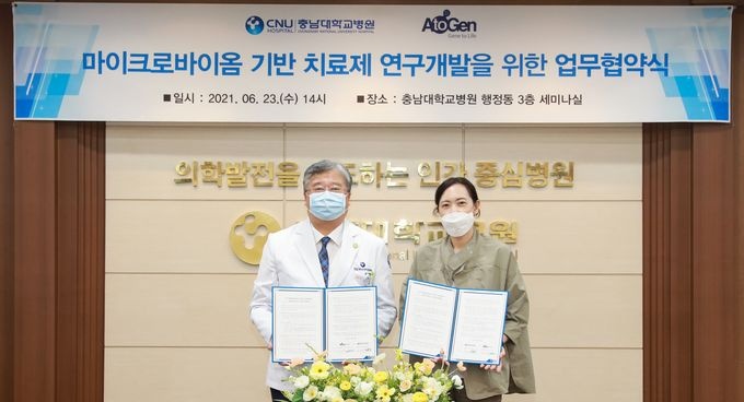 [µ¥Àϸ®¸Þµð ¹Ú´ëÁø ±âÀÚ] Ãæ³²´ëÇб³º´¿ø(¿øÀå À±È¯Áß)Àº 23ÀÏ ¿¡ÀÌÅõÁ¨(´ëÇ¥ °ÁöÈñ)°ú ¸¶ÀÌÅ©·Î¹ÙÀÌ¿È ±â¹Ý Ä¡·áÁ¦ °øµ¿¿¬±¸°³¹ßÀ» À§ÇÑ ¾÷¹«Çù¾àÀ» ü°áÇß´Ù.