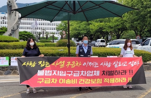 Áö³ 24ÀÏ ¹Î°£ À̼۴ܿ¡ Á¾»çÇÏ´Â ÀÀ±Þ±¸Á¶»çµé°ú ´ëÇÑÀÀ±Þ±¸Á¶»çÇùȸ´Â °æ³²µµÃ» ¾Õ¿¡¼ Áýȸ¸¦ ¿°í "¹Î°£À̼۾÷ü °ü¸® °¨µ¶ ¹ÌÈíÀ¸·Î ÀÀ±ÞÀÇ·áü°è±îÁö ÇãÁ¡ÀÌ ¹ß»ýÇϰí ÀÖ´Ù"¸ç Á¦µµ °³ÆíÀ» Ã˱¸Çß´Ù.