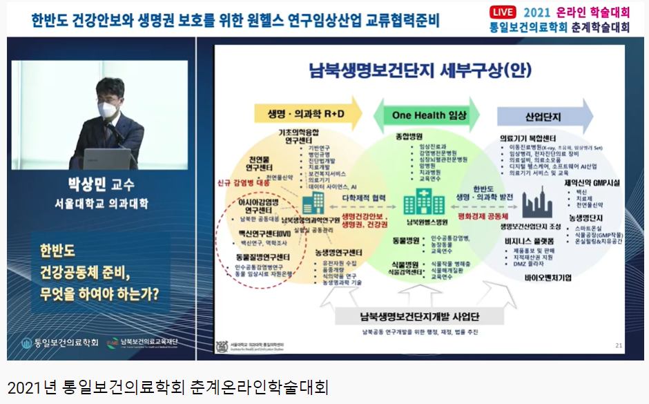 Áö³ 6¿ù25ÀÏ ¿¸° 2021³â ÅëÀϺ¸°ÇÀÇ·áÇÐȸ Ãá°èÇмú´ëȸ¿¡¼ ¹Ú»ó¹Î ¼¿ï´ëÇб³ Àǰú´ëÇÐ ÅëÀÏÀÇÇм¾ÅÍ ºÎ¼ÒÀå(¼¿ï´ëÇб³º´¿ø °¡Á¤ÀÇÇаú ±³¼ö)Àº 'Çѹݵµ °Ç°¾Èº¸¿Í »ý¸í±Ç º¸È£¸¦ À§ÇÑ ¿øÇコ ¿¬±¸ÀÓ»ó»ê¾÷ ±³·ùÇù·Â Áغñ'¸¦ ÁÖÁ¦·Î ¹ßÇ¥ÇÏ¸ç ³²ºÏ»ý¸íº¸°Ç´ÜÁö ¿¬±¸¿ë¿ª °á°ú¸¦ °øÀ¯ÇÏ°í ³²ºÏ Çù·Â ÃßÁø ¹æÇâ¿¡ ´ëÇØ ¼Ò°³Çß´Ù.