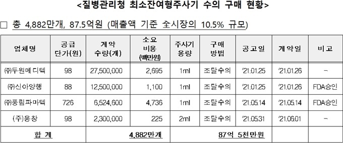 [µ¥Àϸ®¸Þµð °íÀç¿ì ±âÀÚ] Áúº´°ü¸®Ã»(Áúº´Ã»)ÀÌ ÃÖ¼ÒÀÜ¿©Çü(LDS) ÁÖ»ç±â ±¸¸Å¸¦ ¼öÀǰè¾à ÇüÅ·ΠÁøÇàÇÏ¸é¼ ÃÖ´ë ‘8¹è’°¡ ³Ñ´Â °¡°ÝÀ» ÁöºÒÇÑ °ÍÀ¸·Î ³ªÅ¸³µ´Ù.