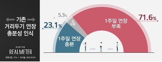 ÇÏÁö¸¸ ¸®¾ó¹ÌÅͰ¡ YTN ÀÇ·Ú·Î Áö³ 2ÀÏ Àü±¹ ¸¸ 18¼¼ ÀÌ»ó 500¸íÀ» ´ë»óÀ¸·Î Á¶»çÇÑ °á°ú, ÀÀ´äÀÚÀÇ 71.6%´Â 5ÀÎ ÀÌ»ó ¸ðÀÓ ±ÝÁö¿Í ¿µ¾÷½Ã°£ Á¦ÇÑ µî ±âÁ¸ °Å¸®µÎ±â¸¦ '´õ ¿¬ÀåÇØ¾ß ÇÑ´Ù(1ÁÖÀÏ ¿¬ÀåÀ¸·Î´Â ºÎÁ·ÇÏ´Ù)'°í ´äÇß´Ù.