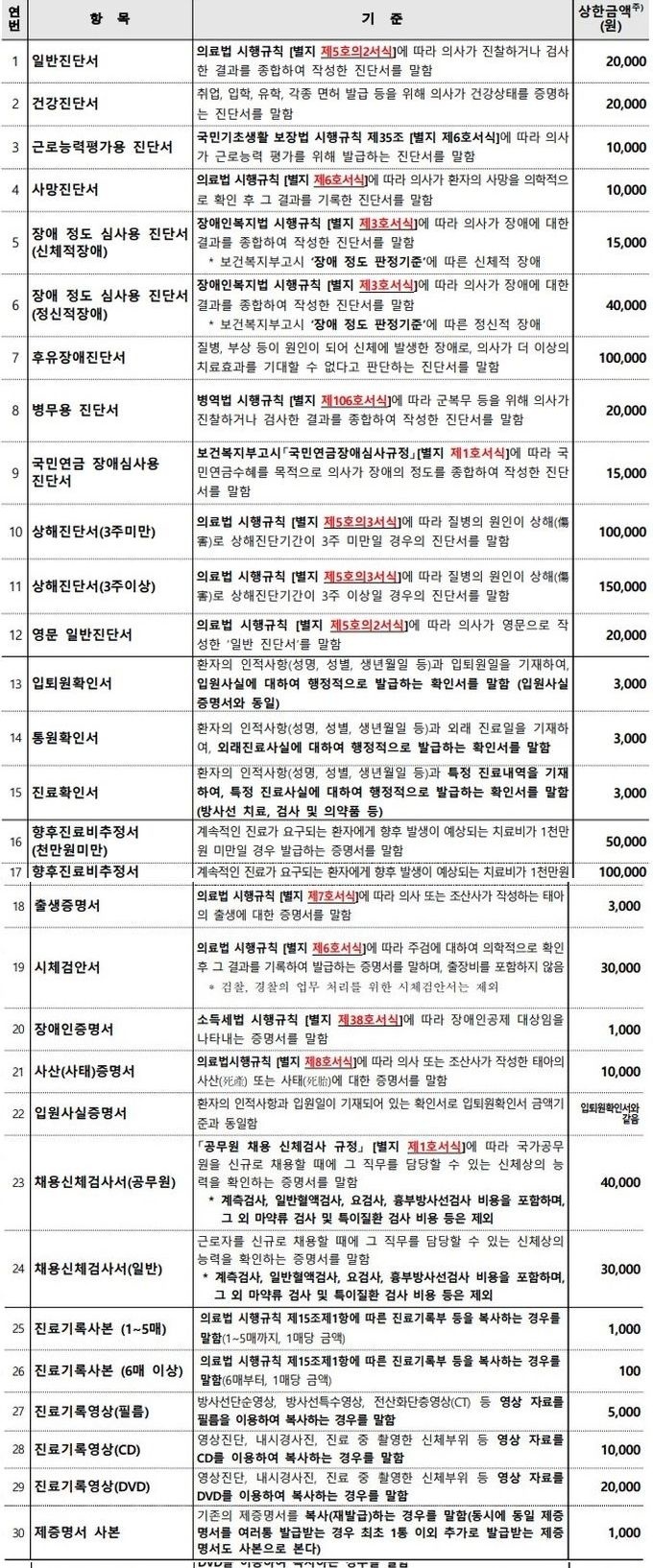 ÇÑÆí, º¸°Çº¹ÁöºÎ´Â Áö³ 2017³â 2017³âµµ ºñ±Þ¿© Áø·áºñ¿ë µî ÇöȲÁ¶»ç ÀڷḦ ºÐ¼®ÇØ Àϼ± ÀÇ·á±â°ü¿¡¼ ¸¹ÀÌ ¹ß±ÞµÇ´Â Á¦Áõ¸í 30°³ Ç׸ñÀ» Á¤¸®Çϰí, °¢ Ç׸ñº° »óÇѾ×À» Á¤Çß´Ù.