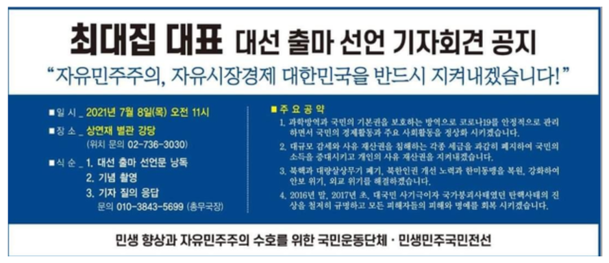Áö³ 7ÀÏ ÇÑ ¾ð·Ð¸Åü¿¡ ÃÖ´ëÁý îñ ȸÀåÀÌ ´ë¼± Ã⸶ ¼±¾ð ±âÀÚȸ°ß °øÁö ±¤°í¸¦ ³»°É°í ´ë±Ç µµÀüÀ» °ø½ÄÈÇÑ °ÍÀÌ´Ù.