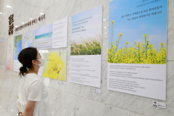 ÀÇ·áÁøµéÀÇ ¸Þ½ÃÁö´Â º´¿ø 1Ãþ º®¸é¿¡ ºÎÂøµÅ ȯÀÚ¿Í º¸È£ÀÚ¿¡°Ô °ø°³µÆ´Ù. CSÆÀÀ» ÅëÇØ °ø¸ðµÈ À§·Î·°ø°¨ ¸Þ½ÃÁö Áß ¿ì¼öÀÛÀ¸·Î ¼±Á¤µÈ ±ÛÀÌ °Ô½ÃµÆ´Ù.