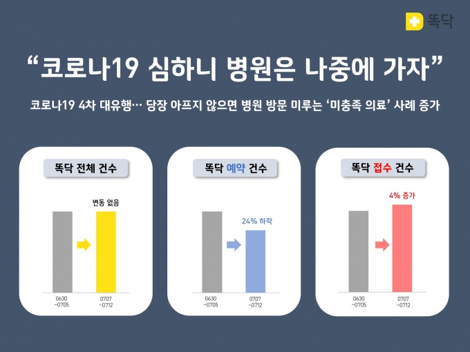¸ð¹ÙÀÏ º´¿ø ¿¹¾àÁ¢¼ö ¼ºñ½º '¶È´Ú'À» ¿î¿µÇÏ´Â ºñºê·Î½º(´ëÇ¥ ¼Û¿ë¹ü)°¡ Äڷγª19 4Â÷ ´ëÀ¯Çà ÀÌÈÄ ¸ð¹ÙÀÏ Áø·á ¿¹¾à °Ç¼ö´Â ÁÙ¾îµç ¹Ý¸é ¸ð¹ÙÀÏ Áø·á Á¢¼ö °Ç¼ö´Â ´Ã¾ú´Ù°í 14ÀÏ ¹àÇû´Ù.