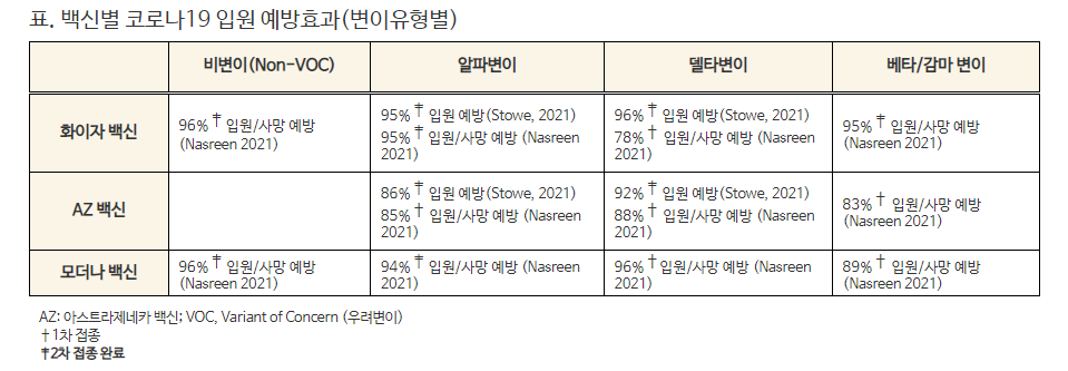 ƯÈ÷ 1ȸ Á¢Á¾ ¿Ï·á ½Ã º¯ÀÌ ¹ÙÀÌ·¯½º °¨¿°À¸·Î ÀÎÇÑ ÀÔ¿ø ¹× »ç¸ÁÀ» 78~96%·Î °¨¼Ò, 2ȸ Á¢Á¾ ¿Ï·á ½Ã 86~96% °¨¼Ò½ÃÄÑ À¯Áõ»ó °¨¿° ¿¹¹æ °æ¿ì´Â º¯ÀÌÇüÀÌ¶óµµ ºñº¯ÀÌÇü°ú ´ëºñÇØ ºñ½ÁÇÑ ¼öÁØÀÇ ¿¹¹æÈ¿°ú¸¦ º¸¿´´Ù.