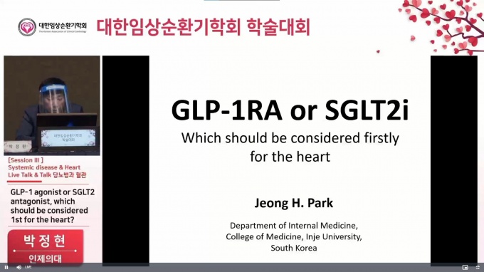 ¹Ú ±³¼ö´Â Áö³ 18ÀÏ ¿¸° ´ëÇÑÀÓ»ó¼øÈ¯±âÇÐȸ ¿Â¶óÀÎ ½ÉÆ÷Áö¾ö °¡¿îµ¥ ‘GLP-1 agonist or SGLT2 antagonist, which should be considered 1st for the heart?’(GLP-1 ÀÛ¿ëÁ¦¿Í SGLT2 ¾ïÁ¦Á¦, ¾î´À ¾àÀ» ½ÉÀå Ä¡·á¿¡ 1¼øÀ§·Î ½á¾ß Çϴ°¡?) ¼¼¼ÇÀÇ ¹ßÇ¥¸¦ ÁøÇàÇß´Ù.