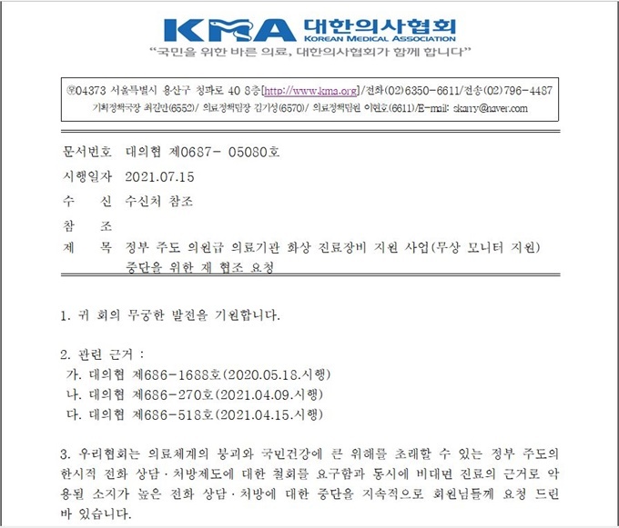 ÀÇÇùÀº “Á¤ºÎ´Â Áö³ 2020³â Á¦3Â÷ Ãß°æ¾ÈÀ» ÅëÇØ ÀÇ¿ø±Þ ÀÇ·á±â°ü¿¡ ´ëÇÑ È»óÁø·áÀåºñ Áö¿ø µîÀ» Æí¼ºÇϰí, ¹Î°£¾÷ü¸¦ ¼±Á¤ÇØ »ç¾÷À» ÃßÁøÇϰí ÀÖ´Ù. ´õ¿íÀÌ ±¹¹«ÃѸ®´Â Áö³ 6¿ù 10ÀÏ °æÁ¦ÀÎ °£´ãȸ¿¡¼ ºñ´ë¸é Áø·á ¹× ÀǾàǰ ¿ø°ÝÁ¶Á¦ ±ÔÁ¦ °³¼± µîÀ» ¿ÏÈÇÑ´Ù°í ¹ßÇ¥ÇÑ ¹Ù ÀÖ´Ù”°í ¹àÇû´Ù.