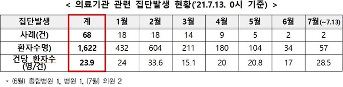 ¿ÃÇØ 1¿ùºÎÅÍ Áö³´Þ±îÁö ÃÑ 68°Ç, È®ÁøÀÚ 1622¸í(»ç·Ê ´ç Æò±Õ 24¸í ¹ß»ý) µîÀÌ ³ª¿Ô´Ù. Áö³´ÞºÎÅÍ´Â À̺ñÀÎÈİú, ÀçȰÀÇÇаú µî ÀÇ¿øÀ» Áß½ÉÀ¸·Î Áý´Ü¹ß»ýÀÌ ½É»óÄ¡ ¾Ê´Ù´Â ÁöÀûÀÌ´Ù.
