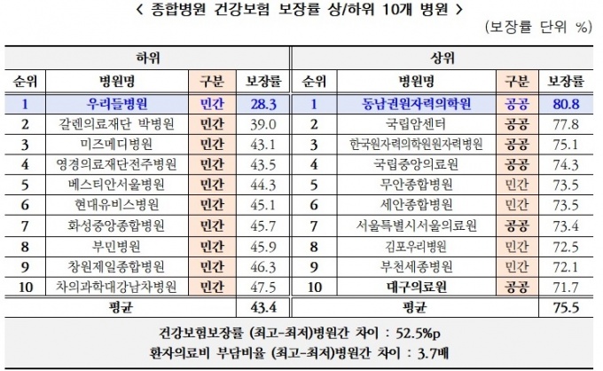 [µ¥Àϸ®¸Þµð ÀÓ¼ö¹Î ±âÀÚ]°æÁ¦Á¤ÀǽÇõ½Ã¹Î¿¬ÇÕ(°æ½Ç·Ã)ÀÌ Àü±¹ 233°³ »ó±ÞÁ¾ÇÕº´¿ø ¹× Á¾ÇÕº´¿øÀ» ´ë»óÀ¸·Î ‘°Ç°º¸Çè ºÎ´ã½ÇÅÂ’¸¦ Á¶»çÇÑ °á°ú, µ¿³²±Ç¿øÀÚ·ÂÀÇÇпøÀÇ °Ç°º¸Çè º¸Àå·üÀÌ 80.8%·Î ³ªÅ¸³ª Àü±¹¿¡¼ ȯÀÚ ºÎ´ãÀÌ °¡Àå ³·Àº º´¿øÀ¸·Î È®ÀÎ.