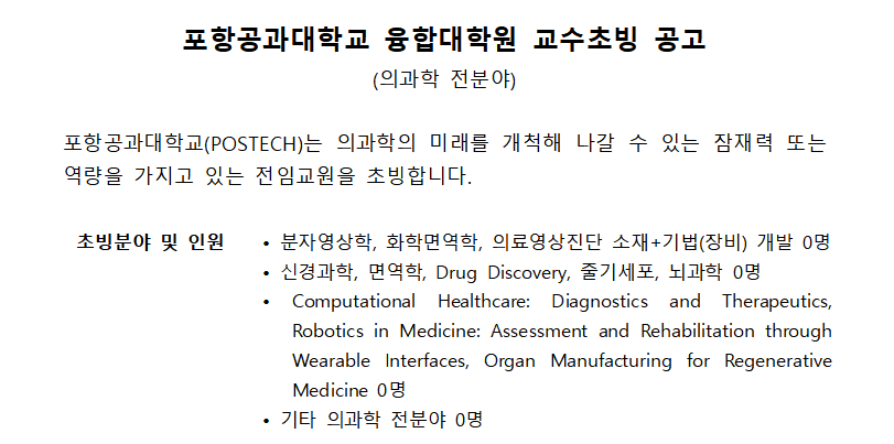 Æ÷½ºÅØÀº Áö³ 26ÀÏ ±³³» ȨÆäÀÌÁö¸¦ ÅëÇØ ºÐÀÚ¿µ»óÇзÀǷ῵»óÁø´Ü ¼ÒÀ緽Űæ°úÇз³ú°úÇÐ‧±âŸ ÀǰúÇÐ Àü ºÐ¾ß µî¿¡ ¸ö´ã°í ÀÖ´Â ¿¬±¸ Á᫐ ÀÇ»ç°úÇÐÀÚ(MD PhD)¸¦ Æ÷½ºÅØ ÀǰúÇÐ Àü(îï) ºÐ¾ß ±³¼ö·Î ÃʺùÇÏ´Â °ø°í¸¦ °Ô½ÃÇß´Ù.