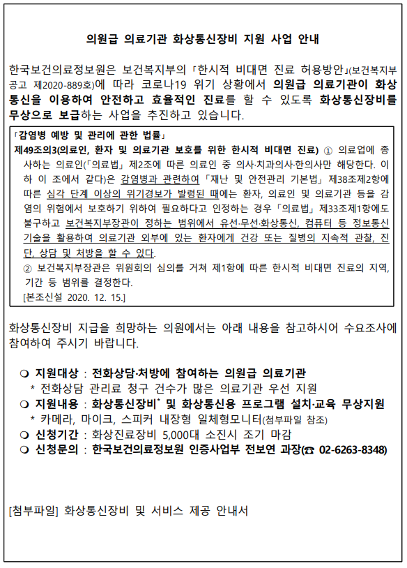 ÀÌ¿¡ µû¶ó »ç¾÷À» ¼öÁÖÇÑ ¹Î°£¾÷ü´Â ÀÇ·á±â°üÀÌ È¯ÀÚ¿¡°Ô È»óÅë½ÅÀåºñ¸¦ »ç¿ëÇØ ºñ´ë¸é ÀǷἺñ½º¸¦ Á¦°øÇÒ ¼ö ÀÖµµ·Ï Ä«¸Þ¶ó, ¸¶ÀÌÅ©, ½ºÇÇÄ¿°¡ ³»ÀåµÈ ÀÏüÇü ¸ð´ÏÅÍ¿Í °ü·Ã ÇÁ·Î±×·¥À» °ø±ÞÇß´Ù.