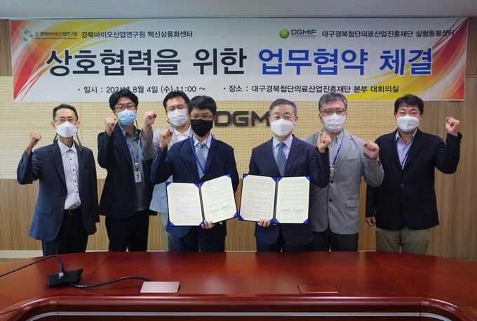 Àç´Ü ½ÇÇ赿¹°¼¾ÅÍ(¼¾ÅÍÀå ±è±æ¼ö)¿Í °æºÏ¹ÙÀÌ¿À»ê¾÷¿¬±¸¿ø(¿øÀå ÇÑÁø°ü) ¹é½Å»ó¿ëȼ¾ÅÍ(¼¾ÅÍÀå ¹ÚÁ¾ÀÌ)´Â ÃÖ±Ù ¹é½Å °³¹ßÀ» À§ÇÑ ¿¬±¸ ¾÷¹«Çù¾àÀ» ü°áÇß´Ù.