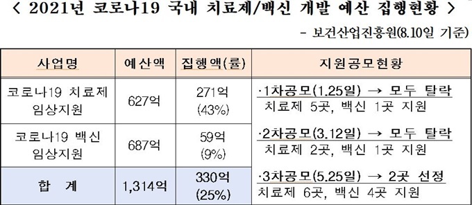 Á¤ºÎ´Â Äڷγª19 ±¹³» Ä¡·áÁ¦·¹é½Å °³¹ß µî ÀÓ»ó Áö¿øÀ» À§ÇØ ÃÑ 1314¾ï¿øÀÇ ¿¹»óÀ» Ã¥Á¤ÇßÀ¸³ª, ¼¼ Â÷·Ê °ø¸ð¿¡¼ ¹é½Å °ü·Ã 2°÷¸¸ Áö¿ø ´ë»óÀ¸·Î ¼±Á¤µÆ´Ù. ÇØ´ç ±â¾÷¿¡´Â 59¾ï¿øÀÌ Áö¿øµÈ´Ù.