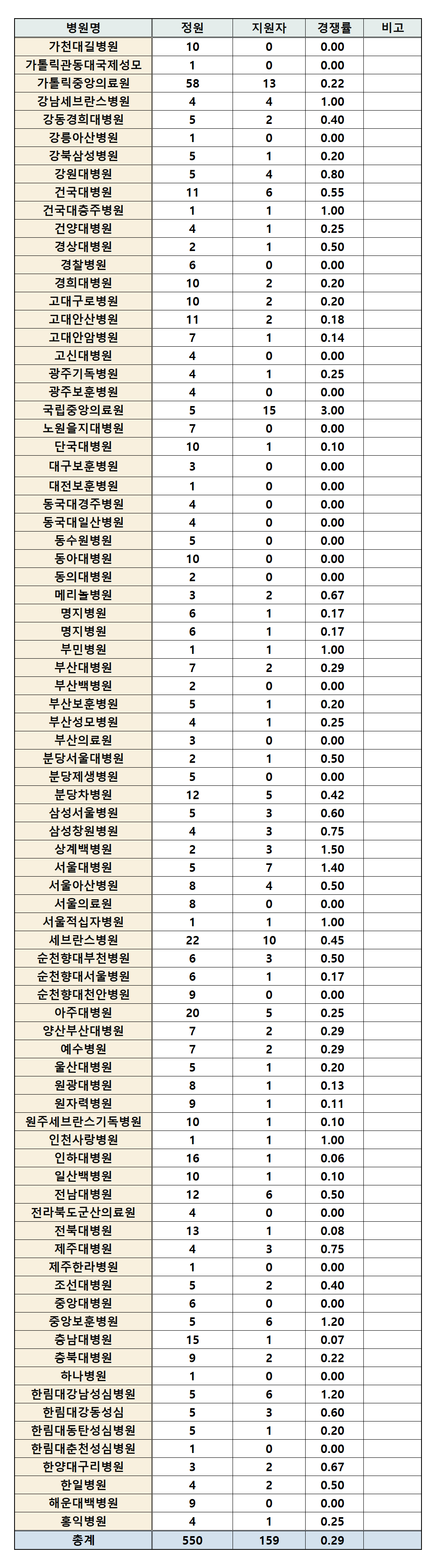 ¡ã°æÈñ´ëº´¿ø ¡ã¸íÁöº´¿ø ¡ã¼øÃµÇâ´ëºÎõº´¿ø ¡ã¼øÃµÇâ´ë¼¿ïº´¿ø ¡ã¾ç»êºÎ»ê´ëº´¿ø ¡ãÁ¶¼±´ëº´¿ø ¡ãÀü³²´ëº´¿ø ¡ã°µ¿¼º½Éº´¿øÀº ¸ðµÎ 1¸í Á¤¿ø¿¡ 1¸íÀÇ Áö¿øÀÚ¸¦ ä¿ü´Ù.