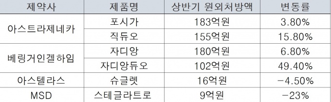 À۳⠻ó¹Ý±â 16¾ï¿øÀÇ Ã³¹æ ¸ÅÃâÀ» ±â·ÏÇÑ ¾Æ½ºÅÚ¶ó½ºÀÇ '½´±Û·¿'(ÀÌÇÁ¶ó±Û¸®Ç÷ÎÁø)Àº Àü³â ´ëºñ 4.5% °¨¼ÒÇÑ 16¾ï¿ø ó¹æµÆ´Ù. ½´±Û·¿Àº Äڷγª¿Í ÇÔ²² ´Ù¸¥ Ä¡·áÁ¦¿¡ ºñÇØ Á¼Àº ±Þ¿© ¹üÀ§µµ ¿µÇâÀ» ¹ÌÃÆ´Ù´Â ºÐ¼®ÀÌ´Ù.