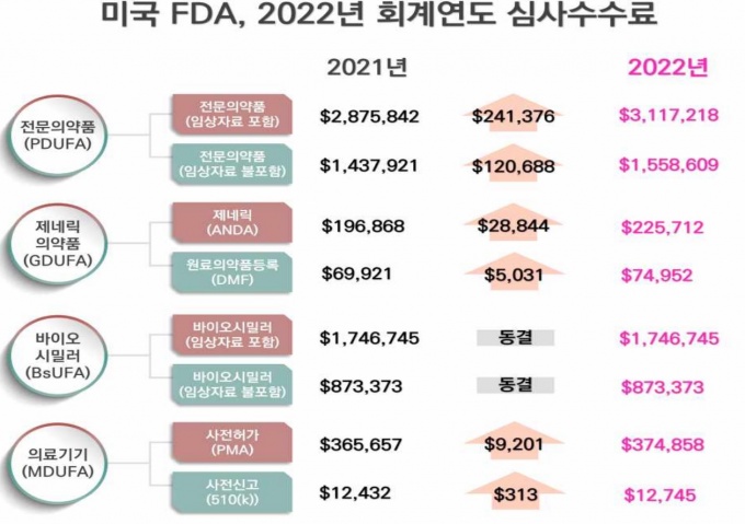 ÀÌó·³ FDA´Â ÀǾàǰÀ̳ª ÀÇ·á±â±â µî ½ÃÆÇ Çã°¡¸¦ À§ÇØ ±â¾÷µéÀÌ ÁöºÒÇØ¾ß ÇÏ´Â ½É»ç¼ö¼ö·á¸¦ Á¾·ùº°·Î ´Þ¸® Á¤Çϰí ÀÖ´Ù. ±×·¯³ª Áß¼Ò±â¾÷À̳ª Èñ±ÍÀǾàǰ µî »óȲ¿¡ µû¶ó ºñ¿ëÀÌ ¸éÁ¦µÇ°Å³ª °¨¸éÇϰí ÀÖ´Ù.
