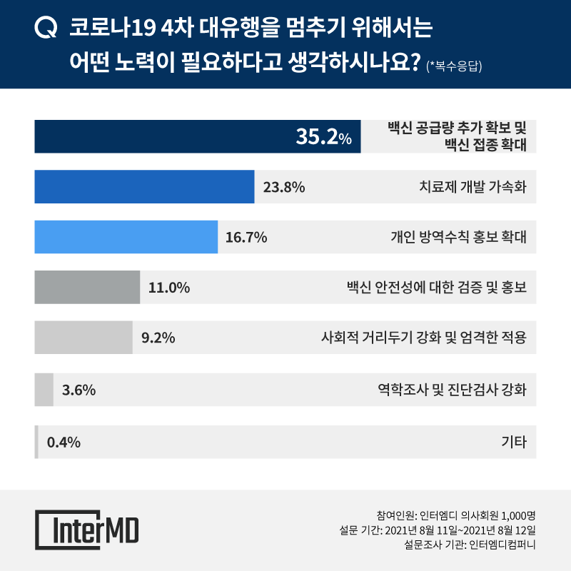 ÀÇ»ç ȸ¿ø 3¸¸5000¿© ¸íÀÌ È°µ¿Çϰí ÀÖ´Â ÀÇ»ç Àü¿ë Áö½Ä·Á¤º¸ °øÀ¯ Ç÷§Æû ÀÎÅÍ¿¥µð(InterMD)´Â Áö³ 8¿ù 11~12ÀÏ ÀϹÝÀÇ ¹× 23°³ Àü¹®ÀǵéÀ» ´ë»óÀ¸·Î ‘Äڷγª19 4Â÷ ´ëÀ¯Çà°ú ¹é½Å Á¢Á¾’¿¡ °üÇÑ ¼³¹®Á¶»ç¸¦ ½Ç½ÃÇϰí 19ÀÏ ±× °á°ú¸¦ °ø°³ÇÑ´Ù°í ¹àÇû´Ù.