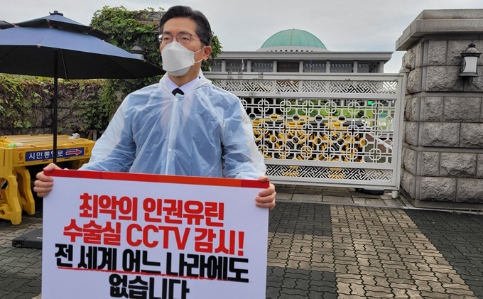 [µ¥Àϸ®¸Þµð °íÀç¿ì ±âÀÚ] ÀÌÇʼö ´ëÇÑÀÇ»çÇùȸ(ÀÇÇù) ȸÀå µî ÁýÇàºÎ°¡ 27ÀÏ ±¹È¸ ¾Õ¿¡¼ ¼ö¼ú½Ç ³»ºÎ CCTV ¼³Ä¡ Àǹ«È¸¦ °ñÀÚ·Î ÇÑ ÀÇ·á¹ý °³Á¤¾È¿¡ ´ëÇØ ¹Ý´ëÇÏ´Â 1ÀÎ ½ÃÀ§¸¦ Àü°³Çß´Ù.