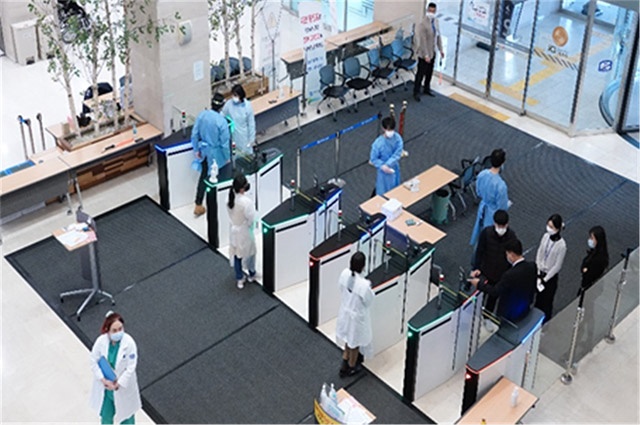 ¿ëÀμ¼ºê¶õ½ºº´¿øÀº ÀÔ¿øÈ¯ÀÚ·Á÷¿ø»Ó¸¸ ¾Æ´Ï¶ó ¿Ü·¡È¯ÀÚ·¹æ¹®ÀÚ µîµµ °¨¿° ÃßÀûÀÌ °¡´ÉÇÑ ½º¸¶Æ®Æù ±â¹Ý ÃâÀÔ°ü¸®½Ã½ºÅÛÀ» °³¹ßÇß´Ù. ¿ø³» Ãß°¡ °¨¿°À» ÃÖ¼ÒÈÇϴµ¥ ¿ªÇÒÇß´Ù.