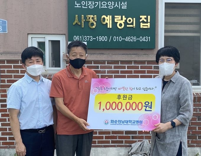 [µ¥Àϸ®¸Þµð ¹é¼ºÁÖ ±âÀÚ] ȼøÀü³²´ëÇб³º´¿ø(º´¿øÀå ½Å¸í±Ù)Àº Ãß¼® ¸íÀýÀ» ¾ÕµÎ°í ‘»çÆò ¿¹¶ûÀÇ Áý’°ú ‘ȼøÀÚ¾Ö¿ø’ µî »çȸº¹Áö½Ã¼³ 2°÷À» ¹æ¹®ÇØ ÈÄ¿ø±ÝÀ» Àü´ÞÇß´Ù.