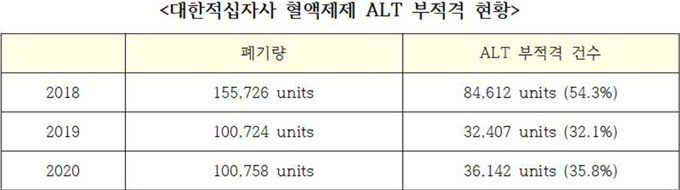 ±×·±µ¥ Áö³ 2018³â Ç÷¾×°ü¸®À§¿øÈ¸ ½ÉÀÇ °á°ú, ºÎÀû°Ý Ç÷¾× ±âÁØÀÎ ALT 65 IU/LÀÌ »óÇâµÅ ÇöÀç´Â 101 IU/L ÀÌ»óÀÇ Ç÷¾×À» ºÎÀû°ÝÇ÷¾×À¸·Î Æó±âÇϰí ÀÖ´Ù.