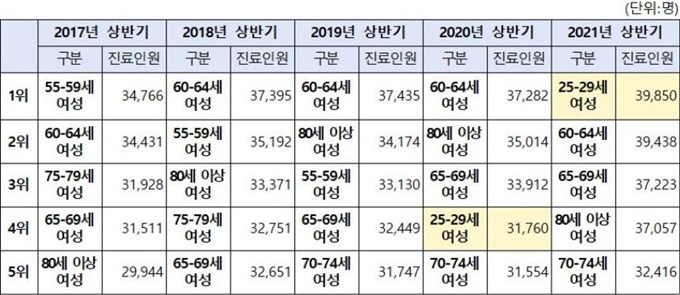 26ÀÏ ±¹È¸ º¸°Çº¹ÁöÀ§¿øÈ¸ ³²Àμø ÀÇ¿ø(´õºÒ¾î¹ÎÁÖ´ç)ÀÌ ±¹¹Î°Ç°º¸Çè°ø´ÜÀ¸·ÎºÎÅÍ Á¦Ãâ ¹ÞÀº ÀÚ·á¿¡ µû¸£¸é ¿ÃÇØ »ó¹Ý±â ¿ì¿ïÁõÀ¸·Î Áø·á¸¦ ¹ÞÀº ¿©¼º Áß 25~29¼¼°¡ 3¸¸9850¸íÀ¸·Î °¡Àå ¸¹¾Ò´Ù.
