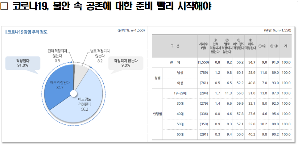 Äڷγª19°¡ 2³â °¡±îÀÌ Àå±âÈÇßÀ¸³ª ±¹¹Î ´ëºÎºÐÀÎ 91%´Â ‘Äڷγª19 °¨¿°ÀÌ °ÆÁ¤µÈ´Ù’°í ÀÀ´äÇß´Ù.