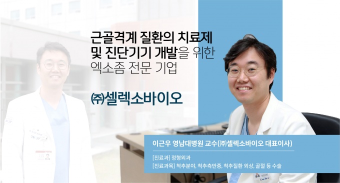 ³ª¾Æ°¡ ÀÌ ±³¼ö´Â Áٱ⼼Æ÷ À¯·¡ ¿¢¼ÒÁ»À» ÀÌ¿ëÇÑ ±Ù°ñ°Ý°è Áúȯ Ä¡·áÁ¦ ¹× Áø´Ü±â±â °³¹ßÀ» À§ÇÑ ¿¢¼ÒÁ» Àü¹® ±â¾÷ÀÎ ‘¼¿·º¼Ò¹ÙÀÌ¿À’¸¦ ¼³¸³Çß´Ù.