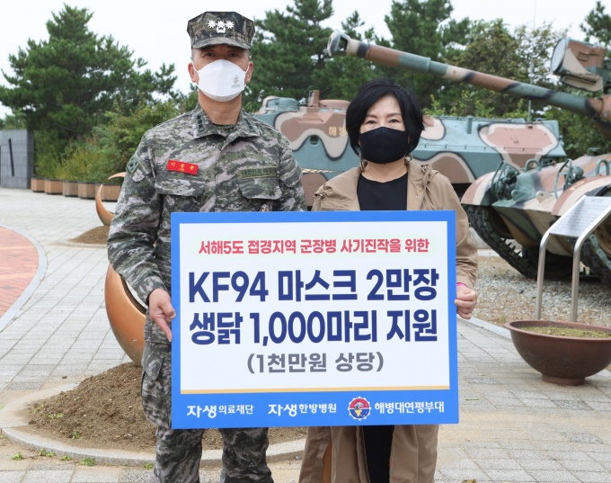 [µ¥Àϸ®¸Þµð ¹ÚÁ¤¿¬ ±âÀÚ] ÀÚ»ýÀÇ·áÀç´ÜÀº ÇØº´´ë ¿¬ÆòºÎ´ë¿¡ Äڷγª19 ¿¹¹æ°ú °Ç° ÁõÁøÀ» À§ÇÑ °Ý·Á¹°Ç°À» Àü´ÞÇß´Ù°í 7ÀÏ ¹àÇû´Ù. °Ý·Á¹°Ç°¿¡´Â ¸¶½ºÅ© 2¸¸Àå°ú º¸¾ç½Ä »ï°è´ß 1000¸¶¸®°¡ Æ÷ÇԵƴÙ.