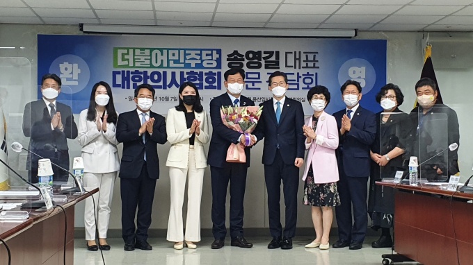 [µ¥Àϸ®¸Þµð ½ÅÁöÈ£ ±âÀÚ] ´õºÒ¾î¹ÎÁÖ´ç ¼Û¿µ±æ ´ëÇ¥°¡ 7ÀÏ ´ëÇÑÀÇ»çÇùȸ¸¦ ¹æ¹®Çؼ ÀÌÇʼö ´ëÇÑÀÇ»çÇùȸÀåÀ» ¸¸³ª »óÈ£ Çù·ÂÀ» ¾à¼ÓÇß´Ù.