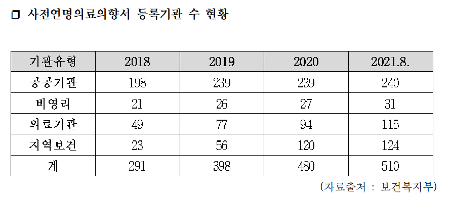 º¸°Çº¹ÁöºÎ°¡ Á¦ÃâÇÑ ÀÚ·á¿¡ µû¸£¸é Áö³ 2018³â 2¿ù 4ÀÏ ¿¬¸íÀÇ·á°áÁ¤Á¦µµ ½ÃÇà ÀÌÈÄ ¿¬µµº° »çÀü¿¬¸íÀÇ·áÀÇÇâ¼ ÀÛ¼ºÀÚ°¡ 2018³â 10¸¸529¸í, 2019³â 43¸¸2138¸í, 2020³â 25¸¸7526¸íÀ̾ú´Ù.
