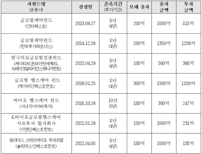 [µ¥Àϸ®¸Þµð ±¸±³À± ±âÀÚ] º¸°Çº¹ÁöºÎ°¡ Çѱ¹º¥Ã³ÅõÀÚ¸¦ ÅëÇØ ÃâÀÚÇÑ 7°³ ÆÝµå 6650¾ï ¿ø °¡¿îµ¥ 4122¾ï ¿øÀ» ÅõÀÚ, ´©Àû¼öÀÍ±Ý 847¾ï ¿øÀ» °ÅµÐ °ÍÀ¸·Î ÆÄ¾ÇµÆ´Ù.