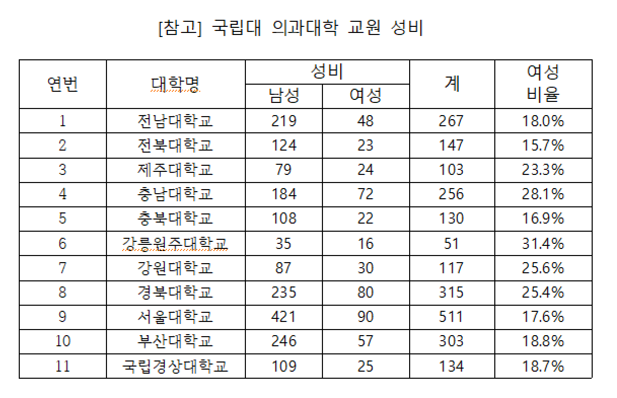 [µ¥Àϸ®¸Þµð ¹Ú´ëÁø‧¹ÚÁ¤¿¬ ±âÀÚ] 11°³ ±¹¸³´ë Àǰú´ëÇÐÀÇ ±³¿ø ¼ººñ °ÝÂ÷°¡ ¿©ÀüÈ÷ ½É°¢ÇÑ °ÍÀ¸·Î ³ªÅ¸³µ´Ù.