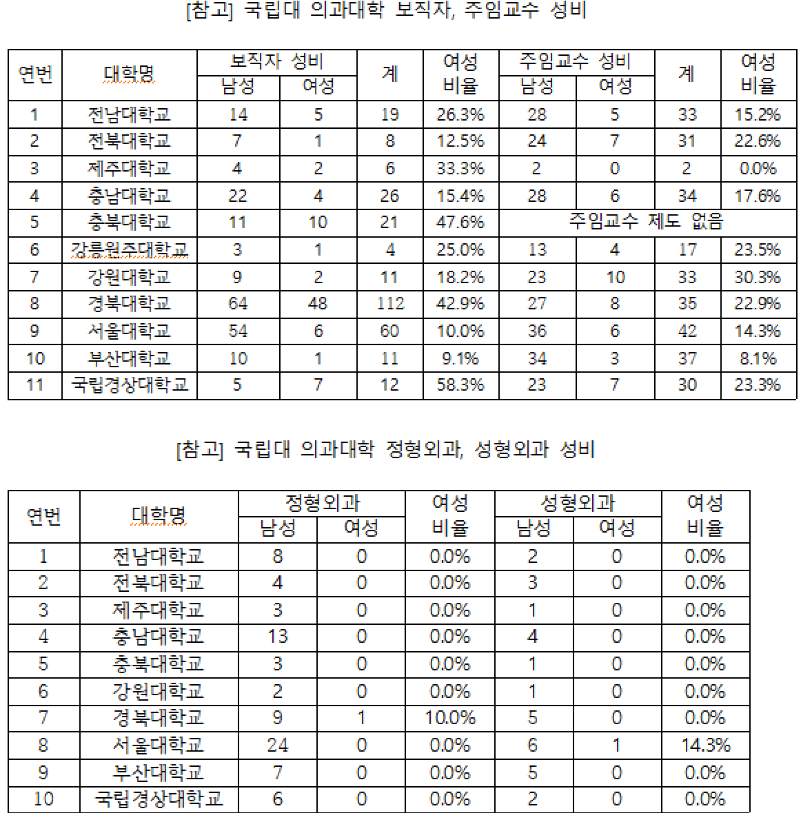 ±Ç ÀÇ¿øÀº “Àǰú´ëÇÐÀ» Á¹¾÷ÇÏ´Â ¿©Çлý ºñÀ²°ú ºñ±³ÇØ Àý¹Ý¿¡µµ ¹ÌÄ¡Áö ¸øÇÏ´Â ¿©¼º ±³¿ø ¼ººñ´Â ´ëÇÐÀÇ ¼ººñ °ÝÂ÷ ÇØ¼Ò ³ë·ÂÀ» ÀǽÉÇÏ°Ô ¸¸µç´Ù”¸ç “¿©¼º ±³¿øÀÌ ºÎÀçÇÑ ±³½ÇÀÇ Á¸Àç°¡ ¿ì¼öÇÑ ¿©¼ºÀÇ·áÀεéÀÇ Áø·Î¸¦ ÀüÅëÀûÀÎ ÀϺΰú·Î ÇÑÁ¤Çϰí ÀÖ´Â ¸¸Å ½ÇÁúÀûÀÎ °³¼± Á¶Ä¡°¡ ¸¶·ÃµÅ¾ß ÇÑ´Ù”°í Ã˱¸Çß´Ù.