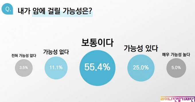 ±×·¯³ª ‘º»ÀÎÀÌ ¾Ï¿¡ °É¸± °¡´É¼º’À» ¹¯´Â Áú¹®¿¡´Â Àý¹Ý ÀÌ»óÀÌ ‘º¸ÅëÀÌ´Ù’(55.4%)¶ó´Â ´äÀ» ÅÃÇß´Ù.