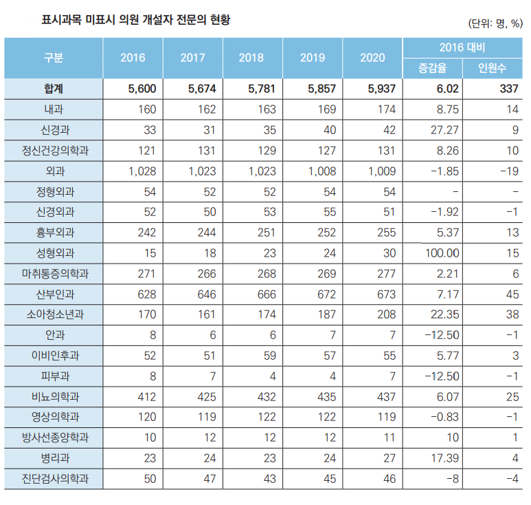 Àüü Àü¹®°ú¸ñº° Àü¹®ÀÇ´Â 2016³â ´ëºñ 2020³â¿¡ 13% ´Ã¾î³ 1¸¸595¸íÀ» ±â·ÏÇß´Ù.