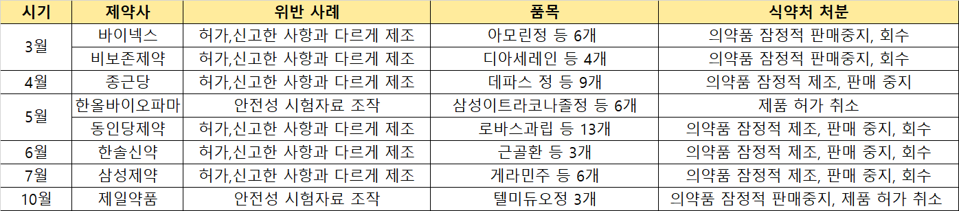 [µ¥Àϸ®¸Þµð ½ÅÁöÈ£ ±âÀÚ] ¶Ç ´Ù½Ã ÀǾàǰ ǰÁú°ü¸® ¹®Á¦°¡ ¹ß»ý, ¿ÃÇØ ǰÁú °ü¸® À§¹ÝÀ¸·Î Àû¹ßµÈ Á¦¾à»ç´Â ÃÑ 8°³ ¾÷ü·Î ´Ã¾î³µ´Ù.