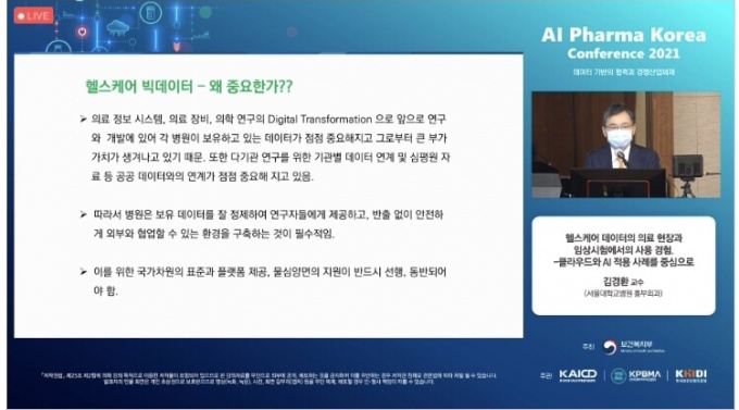 2ÀÏ ¿ÀÀü Çѱ¹Á¦¾à¹ÙÀÌ¿ÀÇùȸ ÁÖÃÖ AI Pharma Korea Conference 2021¿¡¼ ¼¿ï´ëÇб³º´¿ø ÈäºÎ¿Ü°ú ±è°æÈ¯ ±³¼ö´Â ÁÖÁ¦¹ßÇ¥ ‘ÇコÄÉ¾î µ¥ÀÌÅÍÀÇ ÀÇ·áÇöÀå°ú ÀÓ»ó½ÃÇè¿¡¼ÀÇ »ç¿ë°æÇè-Ŭ¶ó¿ìµå¿Í AI Àû¿ë »ç·Ê¸¦ Áß½ÉÀ¸·Î’¿¡¼ ÀÌ °°ÀÌ ¸»Çß´Ù.