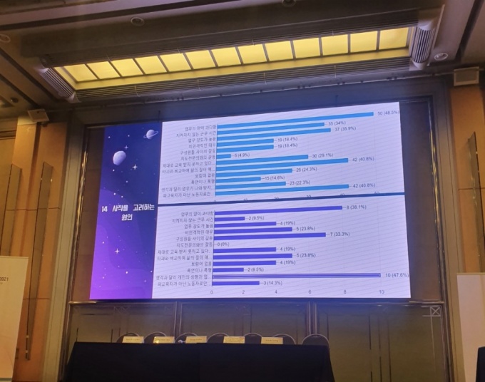 ½ÇÁ¦ Àü°øÀÇµé ¶ÇÇÑ ‘¾÷¹« ¾ç °ú´Ù’¸¦ °¡Àå ÁÖµÈ ¿äÀÎÀ¸·Î ²Å¾Ò´Ù. 48.5% ÀÀ´äÀÚ°¡ »çÁ÷À» °í·ÁÇÏ´Â ¿øÀÎÀ¸·Î »ý°¢Çϰí ÀÖ¾ú´Ù.