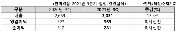 Çѹ̾àǰ(´ëÇ¥ÀÌ»ç ¿ìÁ¾¼ö·±Ç¼¼Ã¢)Àº ¿ÃÇØ 3ºÐ±â ¿¬°áȸ°è ±âÁØÀ¸·Î ¸ÅÃâ 3031¾ï¿ø°ú ¿µ¾÷ÀÌÀÍ 369¾ï¿ø, ¼øÀÌÀÍ 281¾ï¿øÀ» ´Þ¼ºÇß´Ù°í 4ÀÏ ÀáÁ¤ °ø½ÃÇß´Ù.