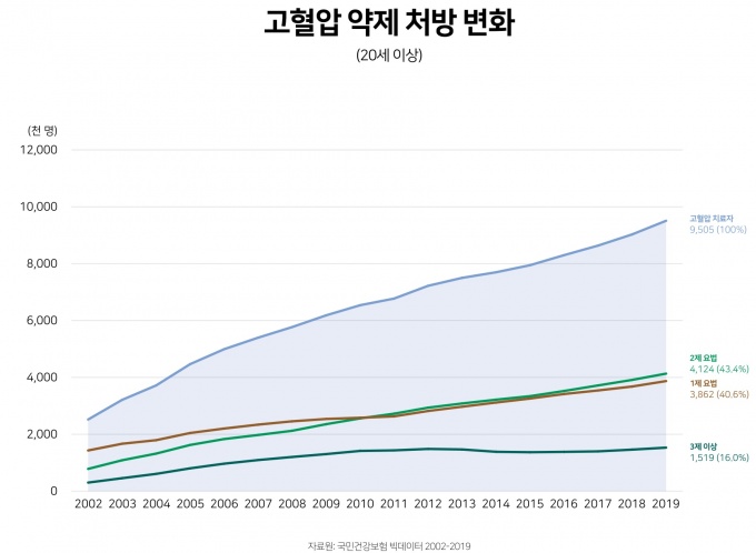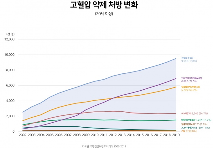 ¿¬°£ 1014¸¸¸íÀÇ °íÇ÷¾Ð ȯÀÚ°¡ ÀǷἺñ½º¸¦ ÀÌ¿ëÇϰí ÀÖ´Ù. 950¸¸¸íÀÌ ¾àÀ» ó¹æ¹Þ°í ÀÖÀ¸¸ç, 688¸¸¸íÀÌ Áö¼ÓÀûÀ¸·Î Ä¡·á¸¦ ¹Þ°í ÀÖ´Ù.