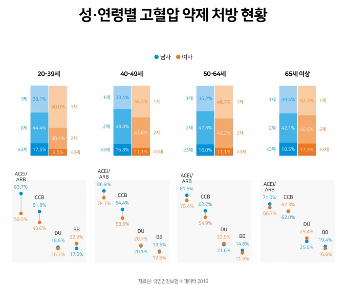 ÀþÀº ¿©¼º¿¡¼´Â ³²¼º¿¡¼º¸´Ù ACE ±æÇ×Á¦·¾ÈÁö¿ÀÅÙ½ÅÂ÷´ÜÁ¦ ¹× Ä®½·Åë·ÎÂ÷´ÜÁ¦ ó¹æ ºóµµ°¡ ³·Áö¸¸, 20~39¼¼ ¿©¼º °íÇ÷¾Ð Ä¡·áÁ¦ÀÇ 60%°¡ ACE±æÇ×Á¦·¾ÈÁö¿ÀÅÙ½ÅÂ÷´Ü¸¦ ó¹æ¹Þ°í ÀÖ´Ù.