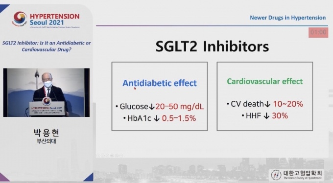 ¹Ú ±³¼ö´Â ¶ÇÇÑ “2015³â ³×ÀÌó ¸®ºä¿¡¼ SGLT2 ¾ïÁ¦Á¦°¡ ´Ü¼øÈ÷ Ç÷´ç¸¸ ³·Ãß´Â ¾àÁ¦°¡ ¾Æ´Ï´Ù. Ç÷¾Ð ³·Ãß´Â È¿°ú°¡ ÀÖ´Ù´Â Á¡À» ¼³¸íÇß°í ¸ÞŸºÐ¼® ÀÚ·á °á°ú ¼öÃà±â Ç÷¾ÐÀº Æò±Õ 4.0Àº mmHG, À̿ϱâ Ç÷¾ÐÀº 1.6 mmHg ³·Ãß´Â °É·Î ¾Ë·ÁÁö±âµµ ÇØ Ç÷¾Ð¾àÀ¸·Îµµ È¿°ú¸¦ Áõ¸íÇß´Ù”°í µ¡ºÙ¿´´Ù. |